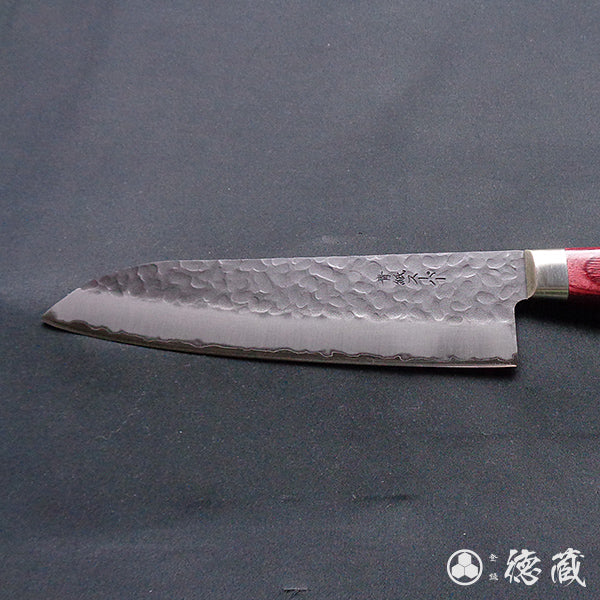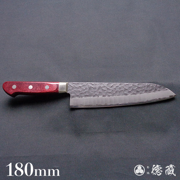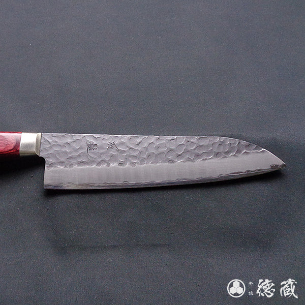 青S 黒肌槌目仕上 三徳包丁 赤ハンドル