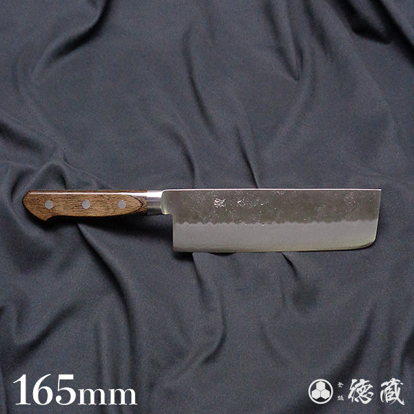 銀三 梨地仕上 菜切包丁 焦茶ハンドル